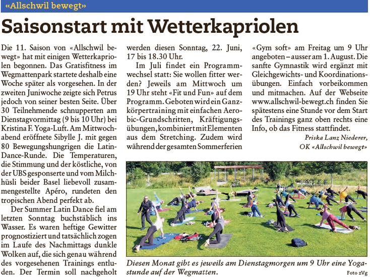 Bericht im Allschwiler Wochenblatt | AWB vom 27. Juni 2019