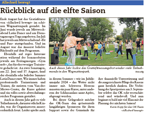 Bericht im Allschwiler Wochenblatt | AWB vom 23. Juni 2023